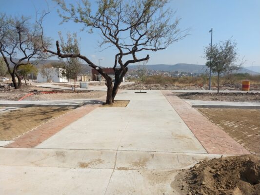 La obra fue ejecutada en agosto de 2022, con una duración aproximada de dos meses, a partir de terracerías previamente habilitadas para el desplante de los elementos de concreto. El proyecto incluyó la construcción de un andador deportivo de aproximadamente 200 m lineales y un área de estacionamiento con capacidad para 14 cajones.