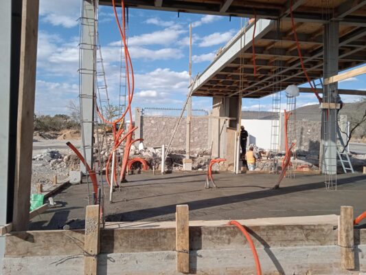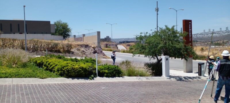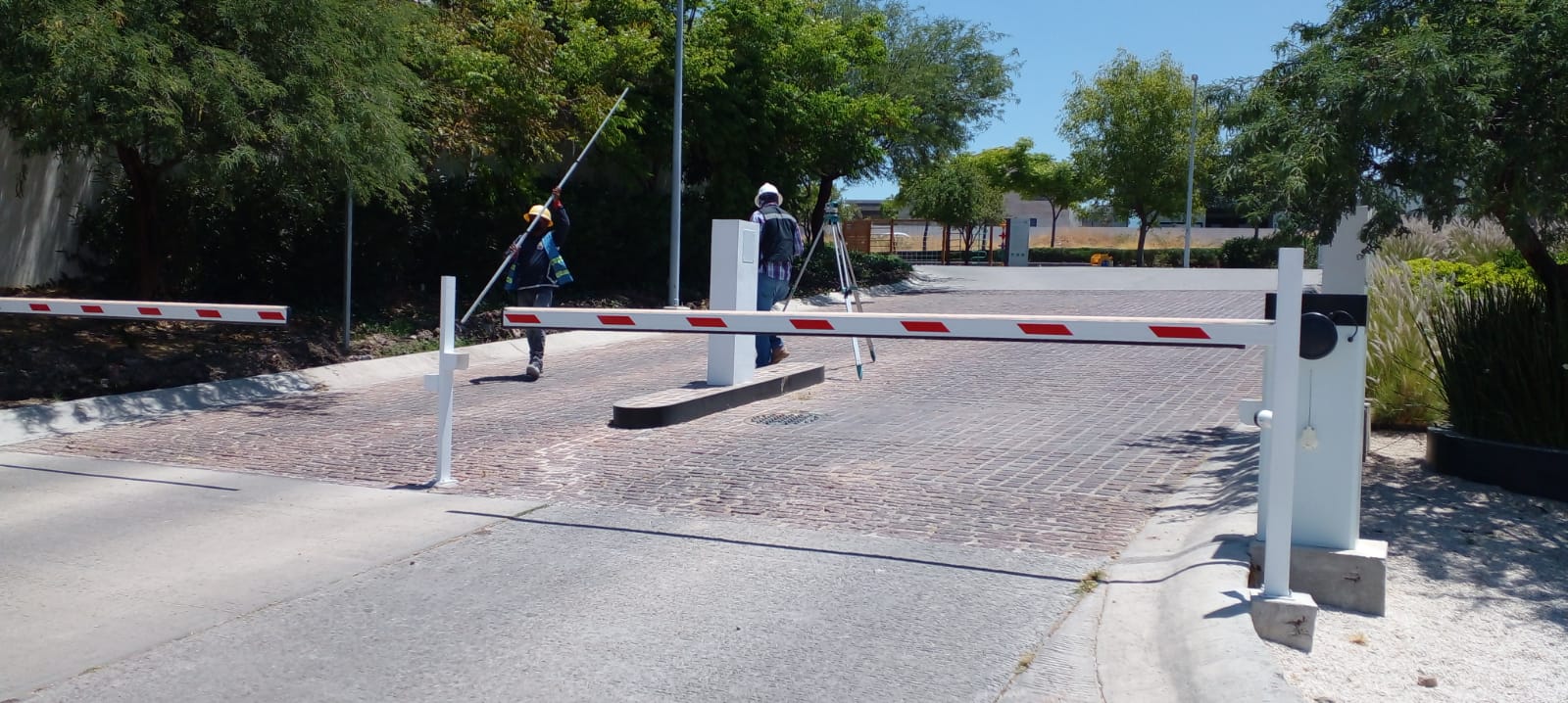 Es una cimentación aislada con una estructura de acero, lozas y firmes de concreto, este acceso es una caseta con un baño, cuenta con una loza o cubierta donde se paran los carros para que puedan registrarse además construimos un muro que abraza por la parte de un lado y arriba de esta estructura principal se forro con fachada y todas las instalaciones especiales por ejemplo relleno sanitario se instaló una cisterna ahogada en la banqueta, la parte eléctrica, parte de sistemas, la aplicación que controla las plumas, también ciertos aspectos de la vialidades, trasplantamos varios árboles, los detalles finales como acabados de madera también los ejecutamos nosotros, el totem donde señala el nombre de LOMAS V la estructura metálica donde hicimos una cimentación muy sencilla, además de cancelerías, puertas, todo lo que es requerido.