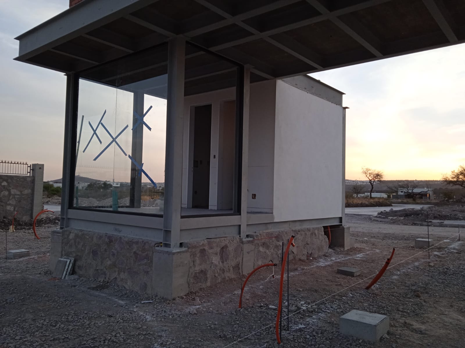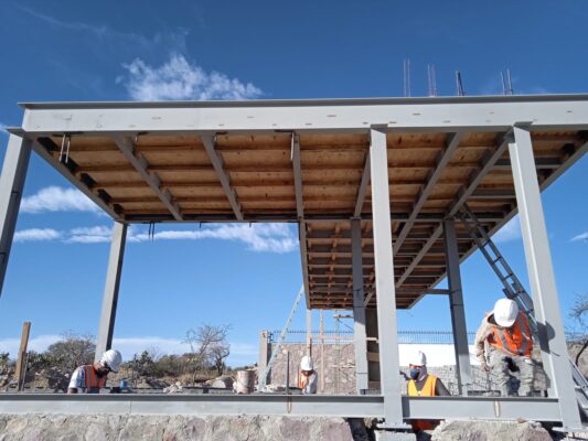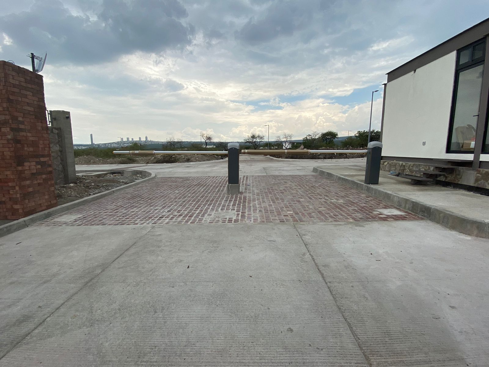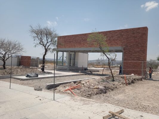El acceso principal se ejecutó con cimentación aislada y estructura de acero, complementada con losas y firmes de concreto. El conjunto integra una caseta de control con sanitario y una cubierta para el registro vehicular. Se construyó un muro envolvente con acabado de fachada arquitectónica y se realizaron las instalaciones especiales, incluyendo drenaje sanitario, cisterna ahogada en banqueta, instalaciones eléctricas, sistemas y control automatizado de accesos.