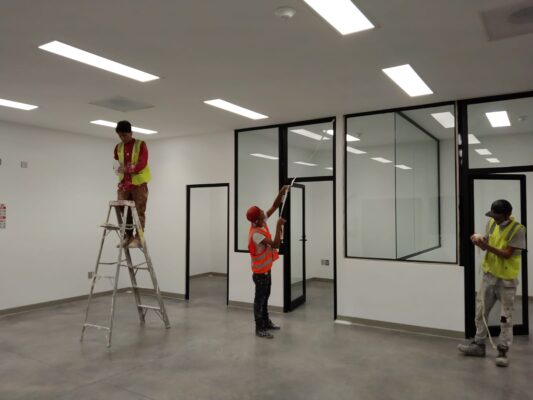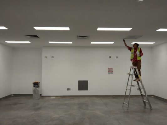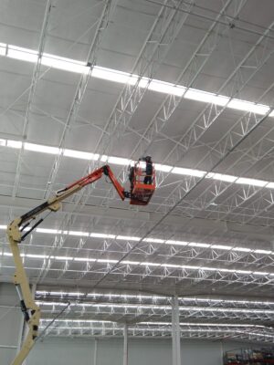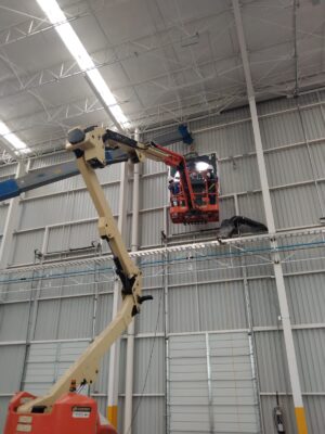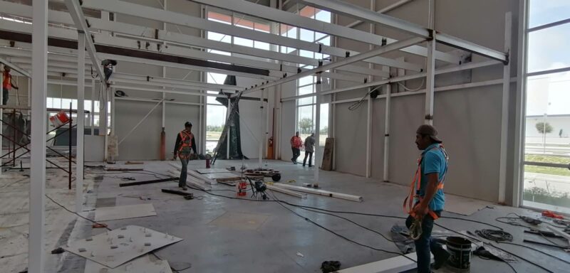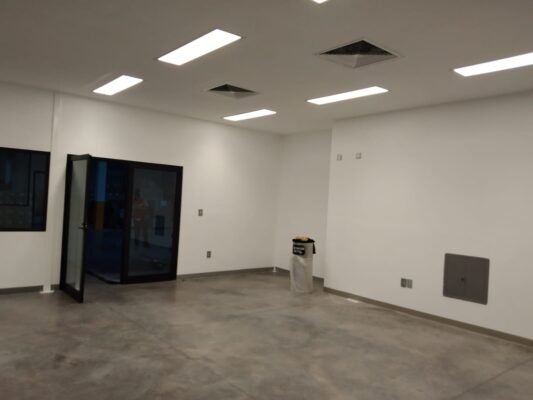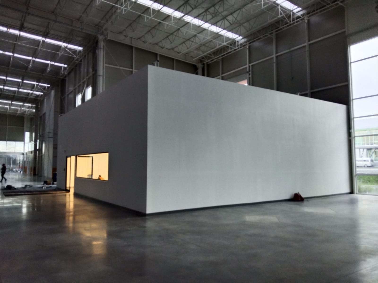 Se desarrollo en 2023, en donde se nos contrató para elaborar el proyecto y la ejecución del mismo, nos encontramos con una nave bacía la cual usaban de bodega, el cliente la renta y nos pide hacer las adecuaciones para que esta pueda ser operada como tal, uno de los trabajos más importantes que realizamos fue un laboratorio para los trabajos de revisión de pieles, baños para la empresa, en una de las adecuaciones que solicitaban era tener cuatro cambios de aire, por lo cual otra fuente de trabajo fueron los extractores en la nave, la parte de iluminarias para la bodega y alimentarlas eléctricamente, también completamos la instalación del sistema contra incendios de manera hidráulica, una rampa de concreto.