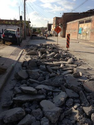 En la calle Portillo se realizó la restauración de la vialidad, levantando el concreto existente dañado y mejorando el terreno y la terracería. Sobre esta base se coló una nueva losa de concreto para tránsito vehicular, con acabado rayado que mejora la tracción de las llantas. Finalmente, se aplicó la pintura señalética correspondiente, cumpliendo con los requerimientos de obra pública y garantizando seguridad y funcionalidad.