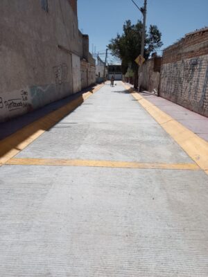 Hemos intervenido en vialidades y banquetas mediante sistemas completos de urbanización. El proceso inicia con excavación y mejoramiento del terreno, evaluando la estructura de terracería mediante capas de materiales inertes. Se colocan guarniciones que delimitan vialidad y banqueta, sobre las cuales se realizan colados de concreto. En las vialidades, se aplica un acabado rayado que mejora la tracción y se incluye la pintura correspondiente. Las banquetas se construyen generalmente con concreto de 8 a 10 cm, incorporando detalles de concreto estampado en la unión con la guarnición, combinando funcionalidad y estética en el espacio urbano.