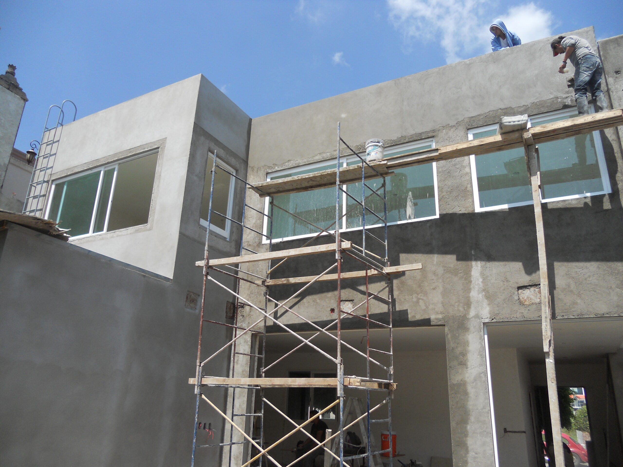 La estructura combina cimentación aislada con marcos rígidos de concreto, tabique rojo recocido y acabados lisos y blancos, integrando además techado con estructura metálica. Esta combinación logra un equilibrio entre construcción tradicional y elementos modernos, resaltando la estética minimalista y contemporánea del proyecto.