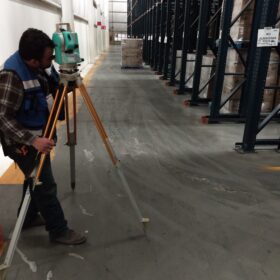 El DHL se realizó un levantamiento topográfico para la reparación del firme de concreto existente, el cual, por temas de uso y operación se se dañó, se agrietó este levantamiento topográfico no sirvió para darle la planicie adecuada al firme, ya que por temas de maniobras afectaba la operación de la empresa, se desvastó y se resanó para lograr esta parte lisa en toda el área de esta nave de DHL.