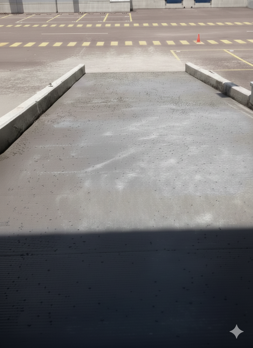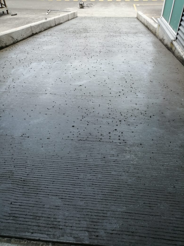 Asimismo, se ejecutó una rampa de acceso vehicular con cimentación corrida, muros de contención, relleno y colado de concreto, garantizando un tránsito seguro y funcional hacia las naves industriales.
